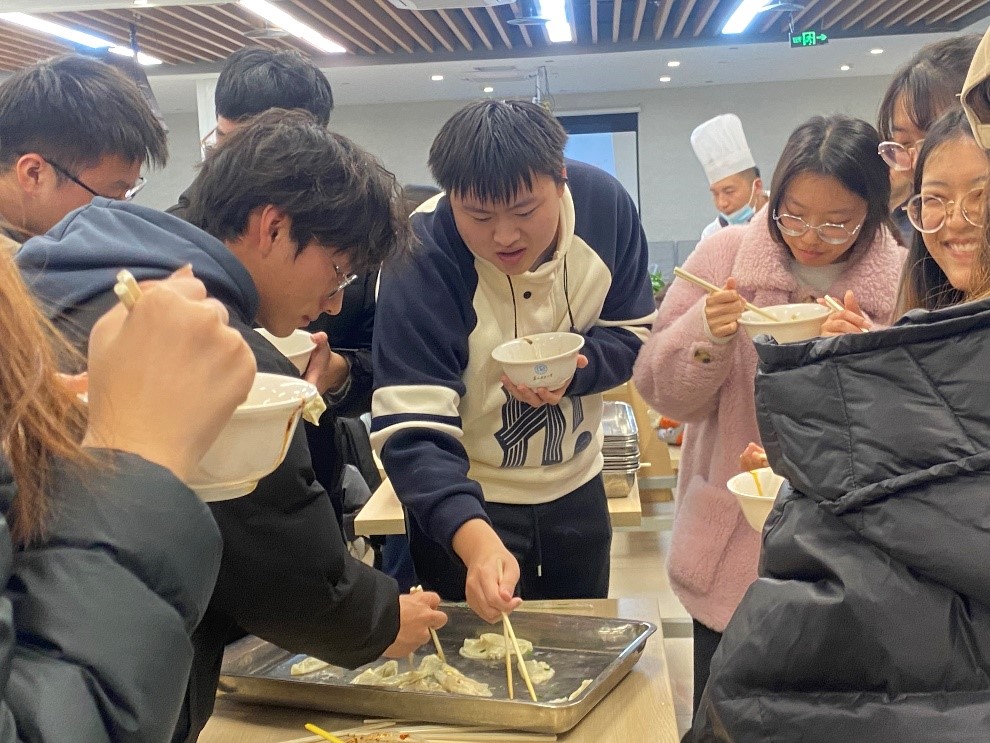 更加有趣的是,有些饺子里藏着糖果或花生等惊喜食材,幸运地咬到的师生纷纷分享着这意外之喜,增添了活动现场的乐趣和温暖氛围。这种意外的“小惊喜”让活动更加有趣,也让大家的互动更加亲密和愉快,希望这份“生活甜美、好事发生”的祝福能够在之后的日常生活中实现。