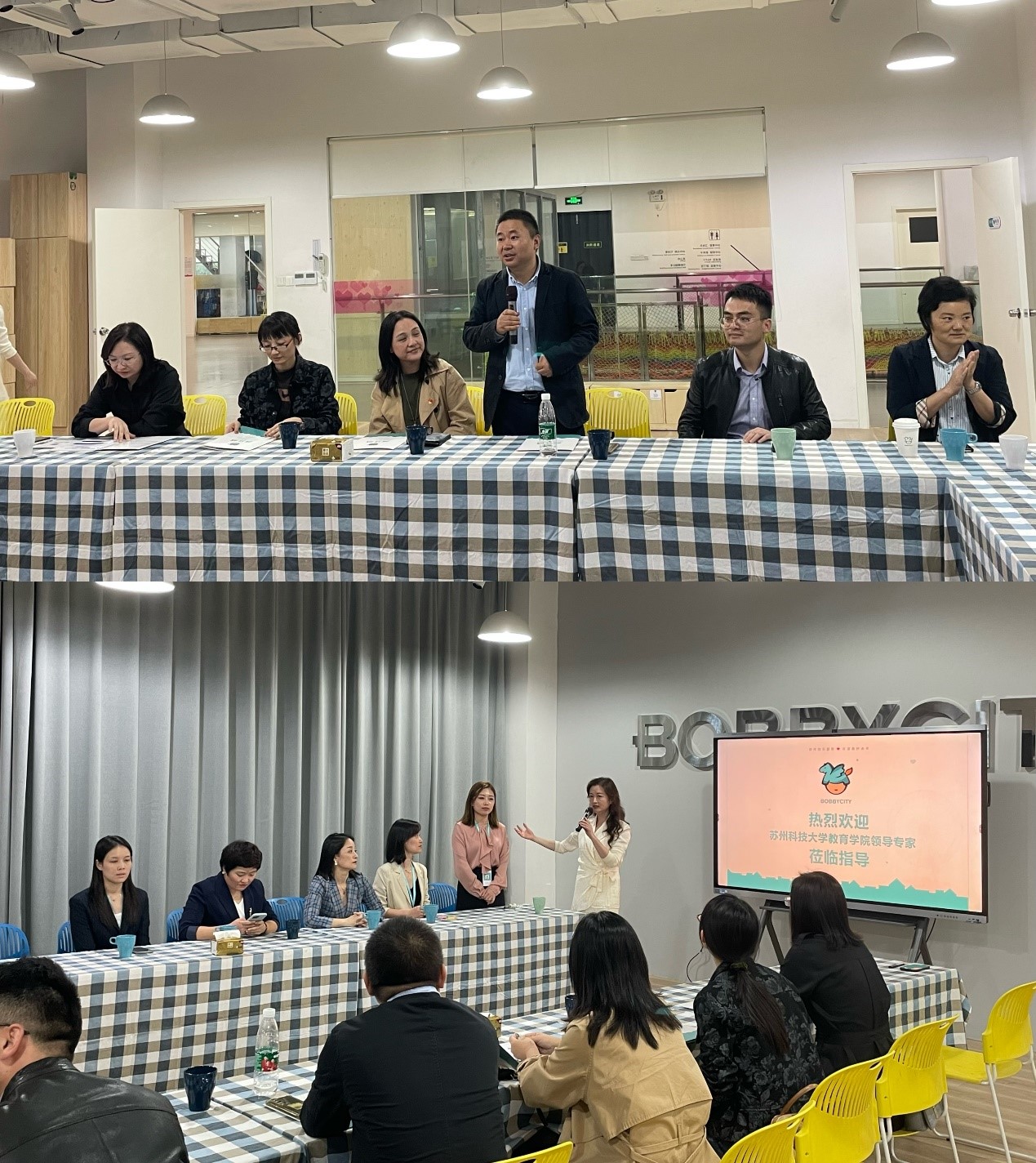 10月13日下午,云顶国际8588yd副书记、副经理徐瑾,副经理邵爱国,学前教育系主任张晋一行走访了苏州市艺玛教育投资有限公司(以下简称艺玛教育)。学前教育系青年教师代表、明德班员工代表一同参加。艺玛教育总经理、波比城董事长马静,协同市场部、营销部、人事部、课程部主要负责人接待了来访一行。双方就在波比城建立云顶国际8588yd “本科就创业基地”“本科生实践教学基地”,以及“党建合作共建”“产教融合课程”“聘任校外指导教师”等事宜进行了深入交流。