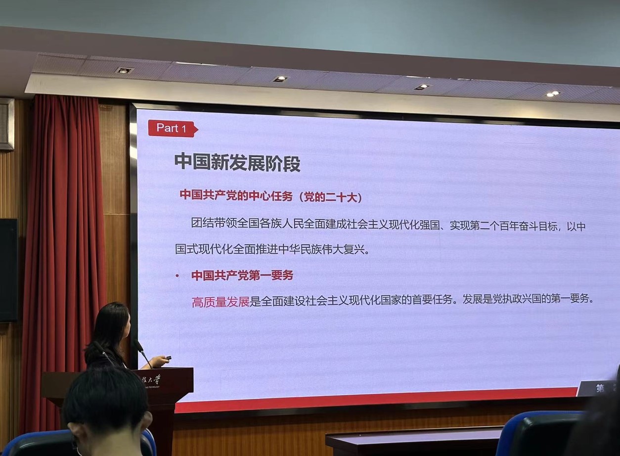 徐瑾紧密结合党的二十大报告中关于加快构建新发展格局、着力推动高质量发展战略内容,带领同学们学习了习近平总书记的重要讲话——《团结带领广大青年在实现中华民族伟大复兴的征途中续写新的光荣》。她引用丰富的数据、翔实的案例并通过中外经济形势发展对比,阐述了中国式现代化高质量发展的本质和当代青年学子的责任担当。她勉励公司青年要将个人职业生涯规划与国家发展战略挂钩,不断提升自我综合能力,尤其是要加强对本专业学术的强化和深造。同学们纷纷表示榜样是照亮前行的光,青年应当以梦为马,砥砺前行,把个人梦融入中国梦中,把个人奋斗融入党和人民的共同奋斗之中,为中华民族的伟大复兴不断勇攀高峰。