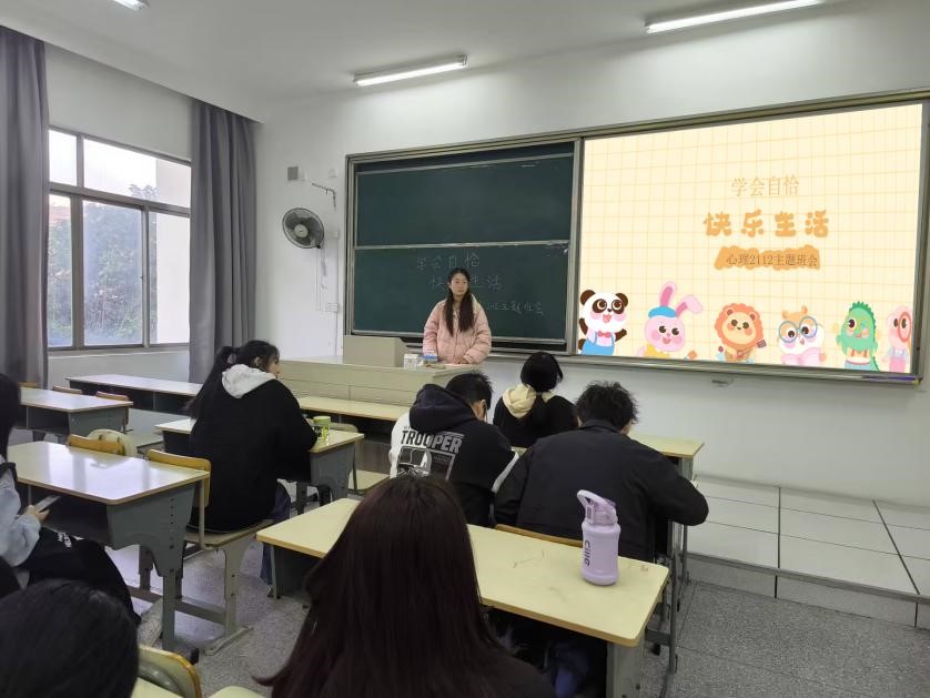 11月17日,云顶国际8588yd应用心理学2112班开展了“学会自洽,快乐生活”主题班会活动。本次活动由组织委员李立燕主持,班级全体同学参与。