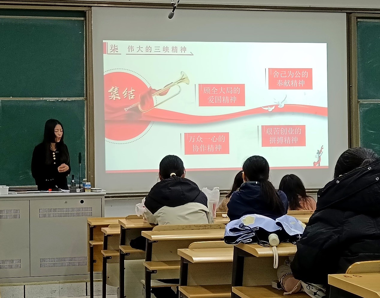 蒋珊围绕“庚续三峡精神,不负光荣使命”的主题,生动讲述了治水历史与三峡精神的深刻内涵。通过丰富的历史故事和三峡工程的实践历程,她带领同学们深入了解了治水对于治国安邦的重要性,以及三峡工程背后的艰辛与智慧。课程中,同学们领会到了三峡精神所蕴含的顾全大局的爱国精神、舍己为公的奉献精神、万众一心的协作精神和艰苦创业的拼搏精神。这些精神不仅是对三峡工程建设的生动写照,更是对中华民族伟大复兴的坚定信念和不懈追求。