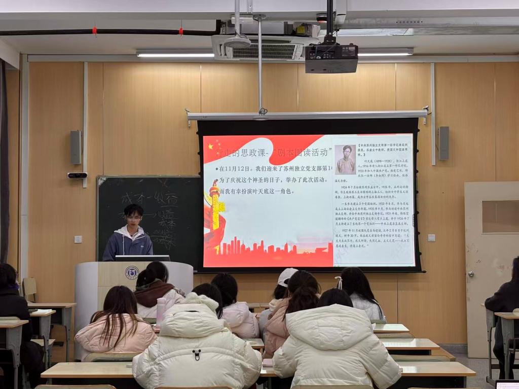 参与中共苏州独立支部“沉浸式”思政课剧本围读的员工代表分享了他们的感悟。两位同学深情回顾了在中共苏州独立支部旧址演绎革命先驱故事的难忘经历。通过扮演侯绍裘、叶天底等烈士角色,他们深刻体悟到革命先辈在艰难岁月中展现出的坚定信念,以及追求真理、矢志报国的崇高理想。他们表示,这种跨越时空的“青春对话”,让历史书本中的形象变得鲜活可感,先烈们坚韧不拔、艰苦奋斗、忠于信仰的革命精神深深震撼并激励着自己,更明确了新时代青年传承薪火、担当使命的责任。院团委副书记尹培瑛又将行走的思政课与青年奋斗精神结合进行宣讲。她指出,剧本围读活动将课堂延伸到历史现场,其核心目的是引导青年在亲身体验和情感共鸣中,主动汲取精神养分,自觉锤炼如革命先辈那般百折不挠、勇于拼搏的奋斗精神。她呼吁,站在新的历史起点,青年学子更应主动将个人理想融入国家发展伟业,以先烈精神为镜,砥砺前行,切实担当起时代赋予的重任。