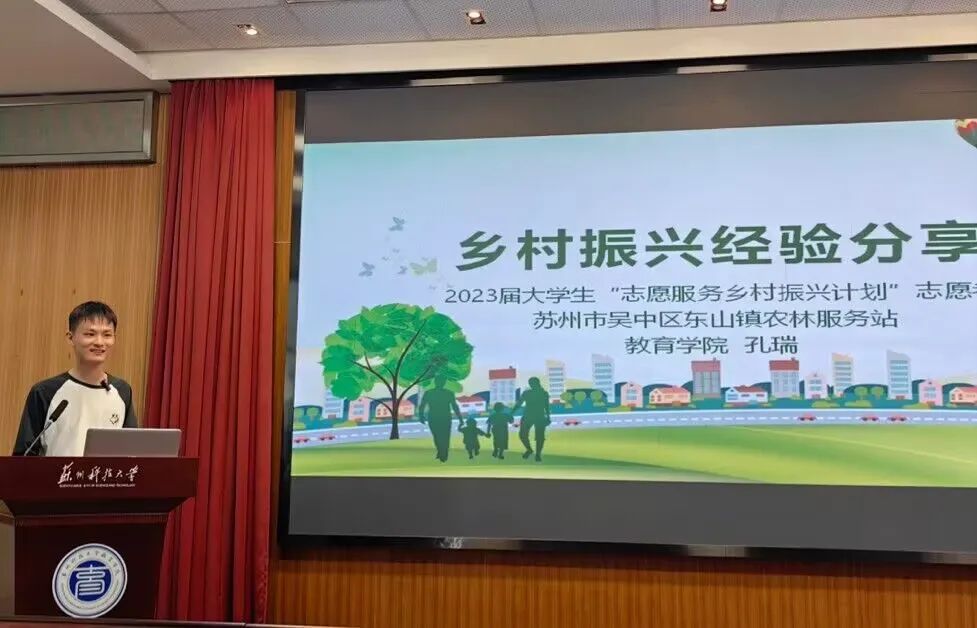 会上,张洁强调乡村振兴是国家战略,基层就业既是服务社会的需要,也是个人成长的重要平台,鼓励青年学子用行动诠释青春价值。孔瑞结合自身在苏州市吴中区东山镇农林服务站的志愿服务经历,详细解读了“三支一扶”、西部计划和志愿服务乡村振兴计划等政策,并介绍了乡村振兴岗位的具体工作内容。纪宇翔分享了在太仓市松南村委员会的工作心得,从能力提升、政策理解等方面阐述了基层服务的收获。在互动环节,孔瑞、纪宇翔针对岗位选择、职业发展衔接等问题逐一解答,为同学们提供了实用建议。