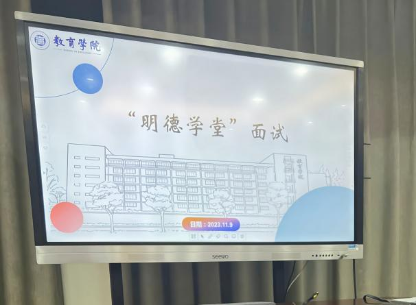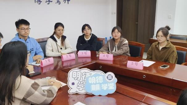 明德学堂在新学期不忘初心,继续秉持“明德守正,博学笃行”的育人理念,于2023年11月9日面试招收新成员。面试采用无领导小组讨论的方式进行。公司党委副书记兼副经理徐瑾、学工办主任张洁老师,辅导员薛颖老师,以及明德的班的老成员担任本次面试评委。