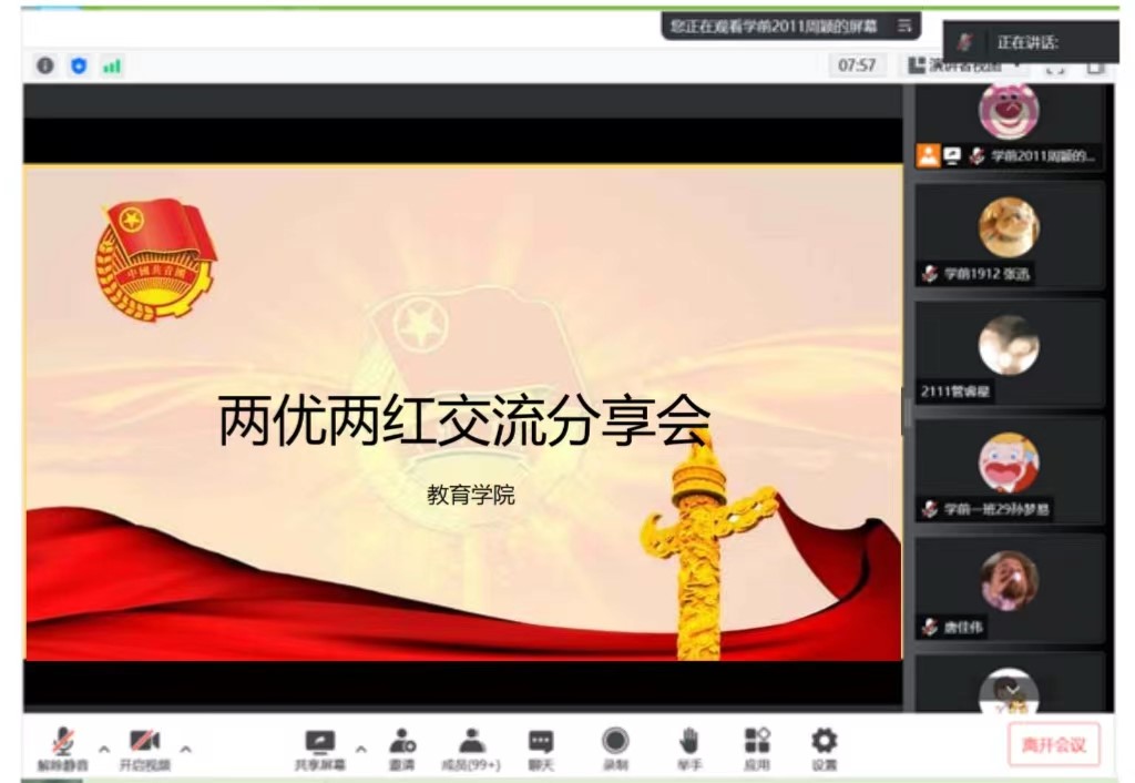 为迎接中国共产党第二十次全国代表大会胜利召开,庆祝中国共产主义青年团成立100周年,凝聚青春力量,传播青春能量,引导全院员工向先进典型学习,云顶国际8588yd于4月30号下午在腾讯会议召开“两红两优”青春故事分享会,团委书记张洁老师和大一大二全体同学参加会议,会议由公司团委副书记张迅主持。
