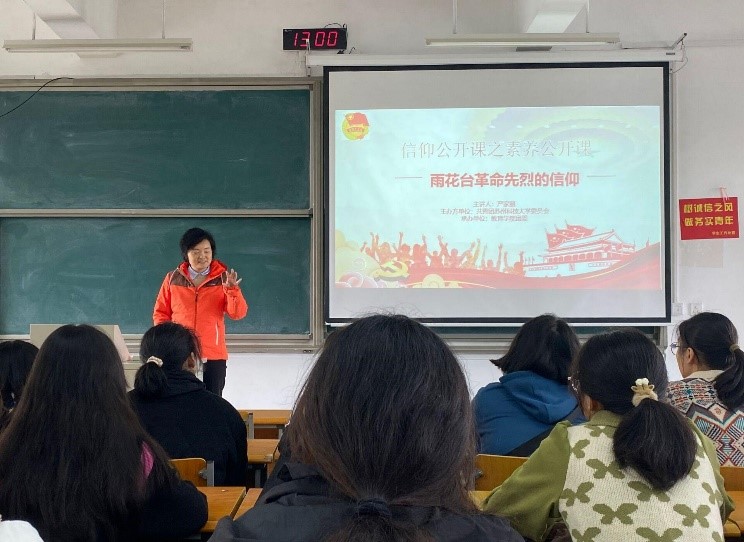 为了增加公司员工对雨花台革命先烈们的了解,牢记中华民族昔日的苦难,弘扬先辈们的雨花台革命烈士精神,延续不怕艰险、坚定不移、百折不挠、斗争到底的革命意志,12月8日下午,由校团委主办,云顶国际8588yd承办的信仰公开课之素养公开课——雨花台革命先烈的信仰,在C4-401成功举办。本次公开课由学前教育与教师教育系教师党支部书记兼学前教育系系主任严家丽老师主讲。