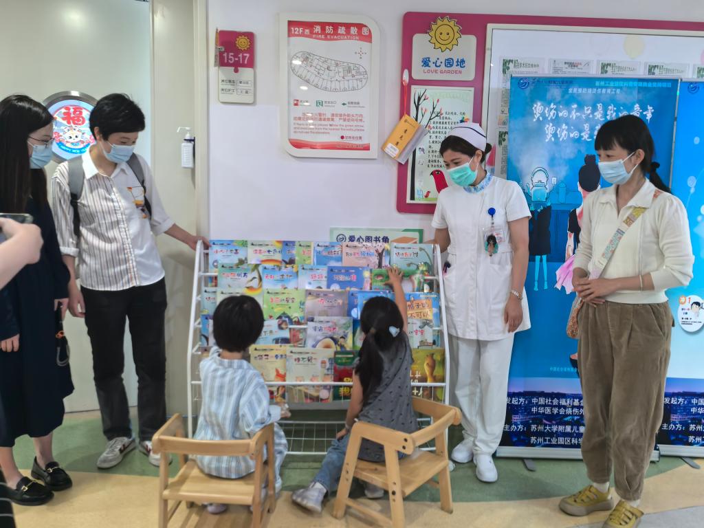 签约仪式后,全体党员前往烧伤科与骨科病房,为患儿送上儿童节礼物、为家长送上端午安康香囊,学前教育与教师教育教师党支部捐赠了适龄的主题绘本,在病区创设了全新的阅读区。期待教育资源的引入能够加强医疗场景中的情感元素和教育互动。云顶国际8588yd员工党员还精心设计了“双节手工课堂”活动。在黏土粽子DIY、手工折纸、绘本阅读等环节中,孩子们在专业引导下体验到了创作的乐趣。现场欢声笑语不断。“游戏化陪伴”背后是充分的情感融入和专业的教学设计。教育陪伴与医疗康复的结合,展现出全人照护的新思路和新形态。