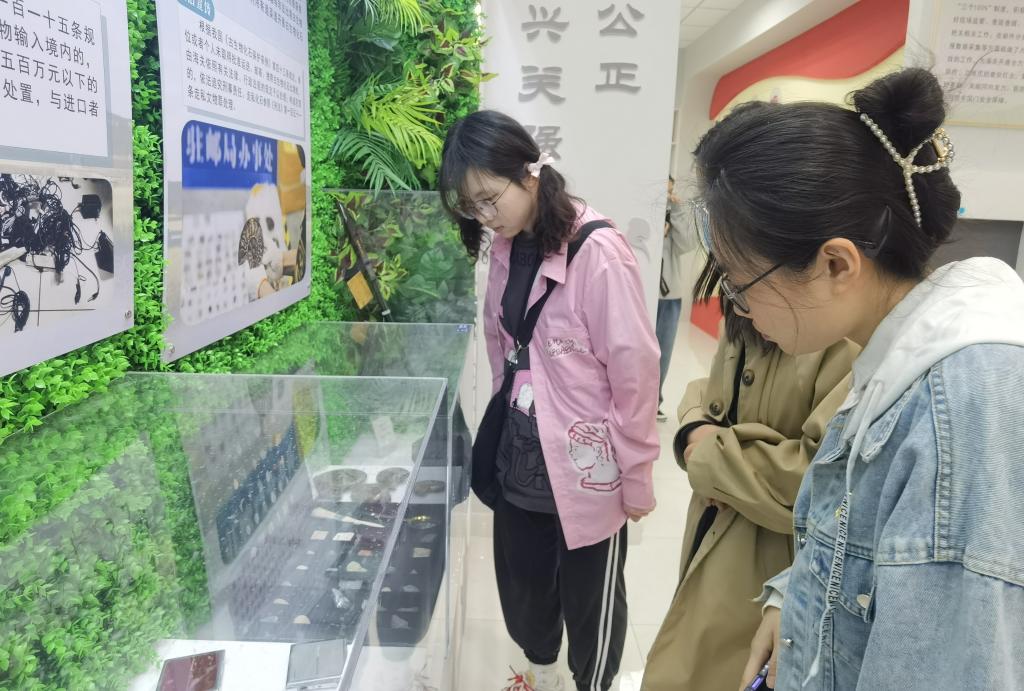 苏州海关驻邮局办事处陈景芸博士带领师生一行,参观了查缉成效展示室。她结合近年来苏州海关查缉的违禁物品情况,从政治安全、经济安全、文化安全、社会安全、生物安全和生态安全六个方面详细生动地介绍了国家安全观的内容,帮助员工树牢总体国家安全观,提高维护国家安全的能力和素养。