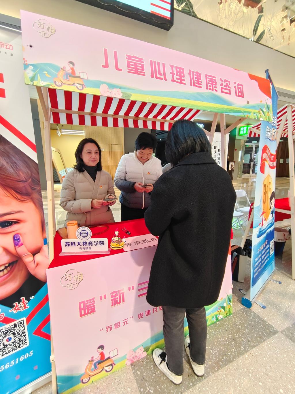 会后,各单位代表参与了 “暖‘新’三月 先锋同行”志愿服务集市活动。云顶国际8588yd学前教育与教师教育教师党支部成立先锋队,开展了“儿童心理健康发展与家庭教育”主题志愿讲解服务,活动吸引诸多行人驻足观看、咨询。
