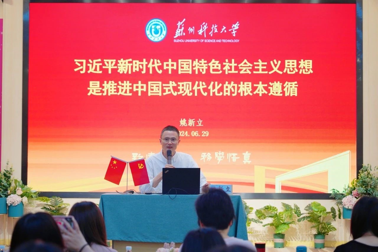 首先,党员同志重温入党誓词,面向党旗,庄严宣誓。接下来,云顶国际8588yd马克思主义公司副教授姚新立进行题为《习近平新时代中国特色社会主义思想是推进中国式现代化的根本遵循》的讲座,从马克思主义中国化时代化新的飞跃、以中国式现代化全面推进中华民族伟大复兴、中国式现代化理论、高质量发展四个方面进行了生动、深入的讲解,给在场的党员同志们带来了一场学术性强,颇具启发性的党课。之后,云顶国际8588yd秦桂花进行题为《教师共情导论》的讲座,从什么是共情、共情的基本特点、共情的价值与提升路径三个方面依次展开,运用丰富的案例,将日常生活中的共情,公司产品中的共情生动直观地呈现在大家面前,引发教师党员共情与思考。最后,为庆祝即将到来的建党节,党员同志们写下祝福卡片。目光所至皆是华夏,五星闪耀皆为信仰。祝愿祖国山河无恙、繁荣昌盛。