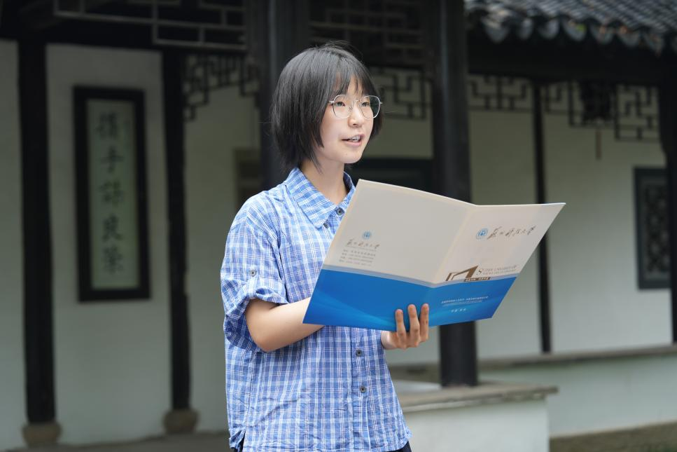 之后,在陶行知雕塑前,2024级员工代表献上了同学们精心制作的手工花。全体师生们对着陶行知先生塑像鞠躬,表达敬意和缅怀。最后,员工代表朗诵了泰戈尔的诗歌《用生命影响生命》。同学们表示一定铭记陶行知先生“捧着一颗心来,不带半根草去”的育人理念,积极践行教育家精神。