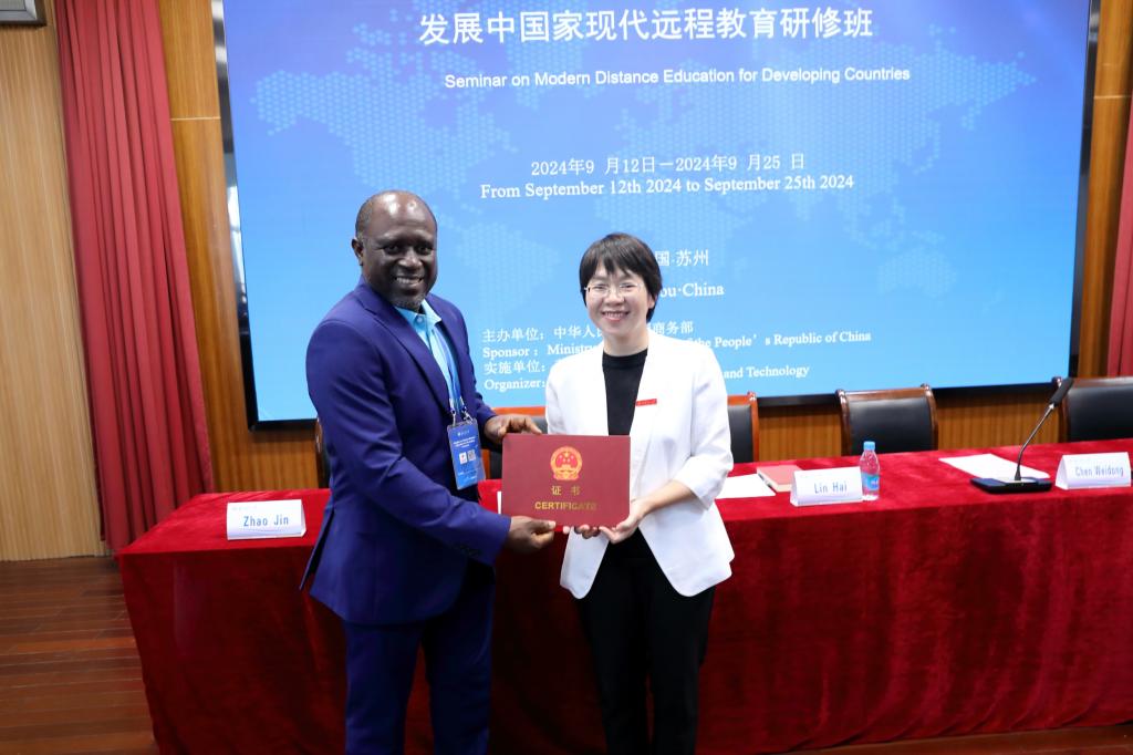 研修班学员代表、来自南非的Ndivhuwo Tshipala博士在发言中指出,发展中国家在教育领域面临诸多挑战,而远程教育为解决这些困境提供了新的解决方案。他期待通过此次研修,能够学习到中国在远程教育领域的先进经验,以期回国后能够推动本国教育事业的发展。