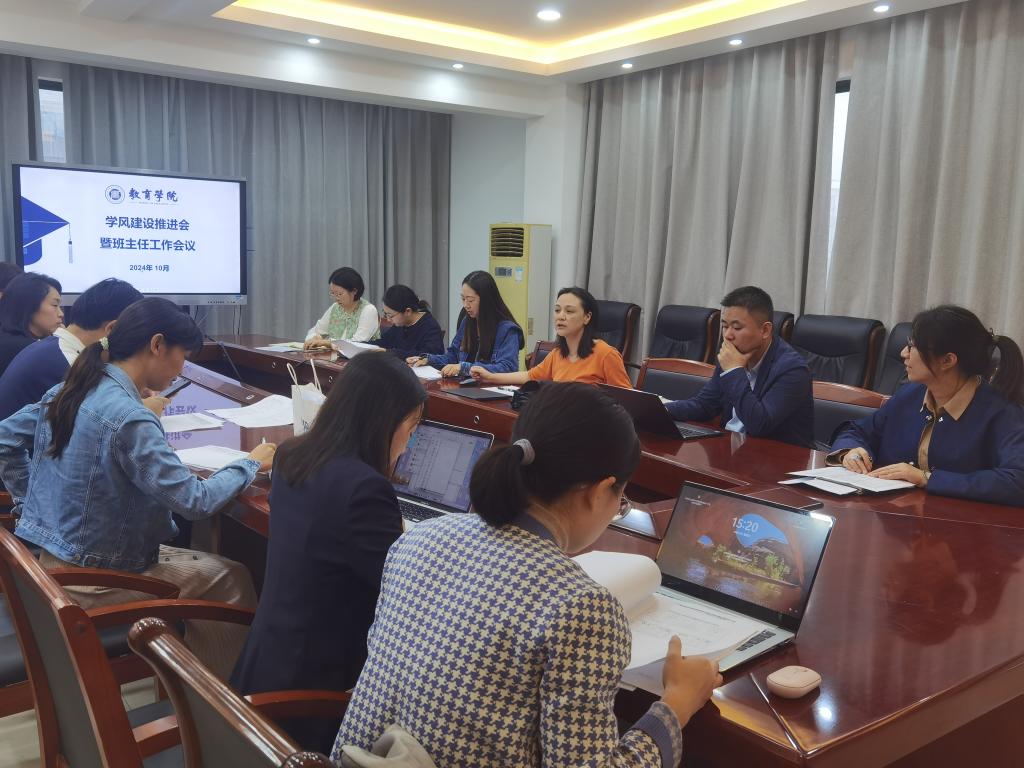 为进一步统一思想、明确目标,发挥班主任育人合力,有效提升公司学风建设质量和人才培养水平,10月16日,云顶国际8588yd在教6-401组织召开学风建设暨班主任工作会议。公司党委副书记兼副经理徐瑾、副经理邵爱国、教务办、学工办及各年级班主任参加会议,会议由徐瑾主持。