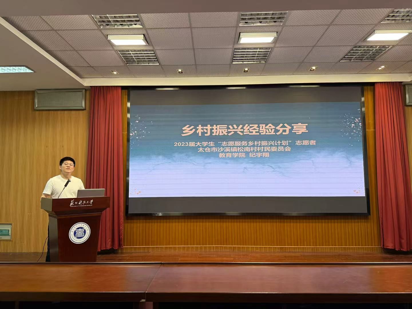 会上,张洁强调乡村振兴是国家战略,基层就业既是服务社会的需要,也是个人成长的重要平台,鼓励青年学子用行动诠释青春价值。孔瑞结合自身在苏州市吴中区东山镇农林服务站的志愿服务经历,详细解读了“三支一扶”、西部计划、志愿服务乡村振兴计划等政策,并介绍了乡村振兴岗位的具体工作内容。纪宇翔分享了在太仓市松南村委员会的工作心得,从能力提升、政策理解等方面阐述了基层服务的收获。在互动环节,两位员工针对岗位选择、职业发展衔接等问题逐一解答,为同学们提供了实用建议。