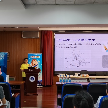 活动伊始,杨骏逸医生通过具体生动的案例介绍了常见的幼儿意外事故的预防与急救处理方法,例如烧烫伤、溺水、气道异物、骨折、擦伤、扭伤等。周云凤护士长重点展示了心肺复苏的操作过程。