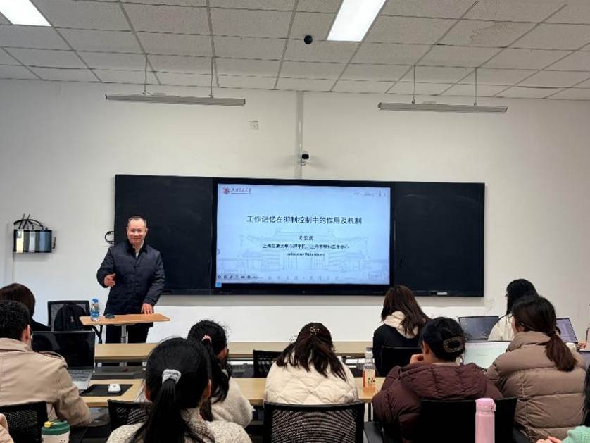 考察结束后,陈安涛教授做主题为“工作记忆在抑制控制中的作用及机制”的学术讲座。讲座由心理系主任姚远主持。陈安涛教授从认知控制的基础理论出发,系统阐述了工作记忆在抑制控制过程中的关键作用及其神经机制,阐明了工作记忆与抑制控制的基本概念及其在日常认知与行为中的重要意义,结合神经成像技术的研究成果,深入解析了人脑在处理冲突信息时工作记忆与抑制控制的交互机制,探讨了该研究在精神疾病早期识别、认知老化干预等方面的应用前景。本次讲座吸引了公司师生的积极参与,现场气氛热烈,互动频繁,充分展现了云顶国际8588yd在心理学前沿领域的学术追求与科研活力,同时也为师生提供了与高水平学者面对面交流的宝贵平台,为公司在认知科学与心理健康领域的科学研究拓展了新的视野。