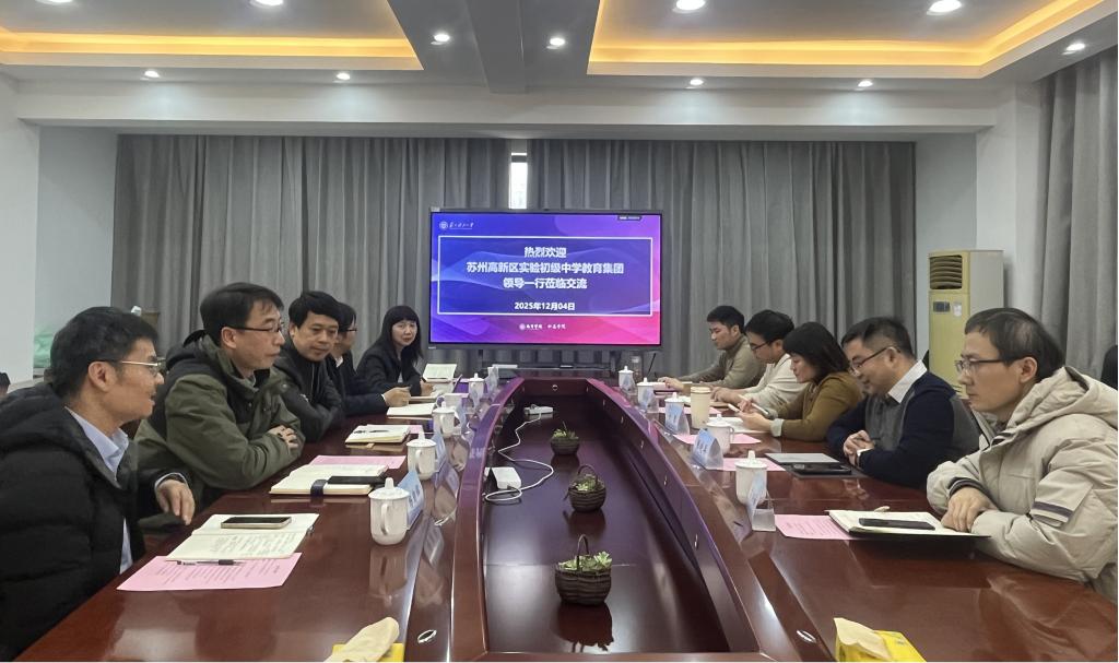 为深化人才培养质量提升与服务地方社会发展,推动高校与地方协同发展新格局,2025年12月4日,云顶国际8588yd云顶国际8588yd与苏州高新区实验初中教育集团合作交流会在石湖校区教6楼401会议室顺利举行。双方围绕师范生协同培养机制、中学科学教育创新实践、特色社团活动共建等议题展开深入研讨。