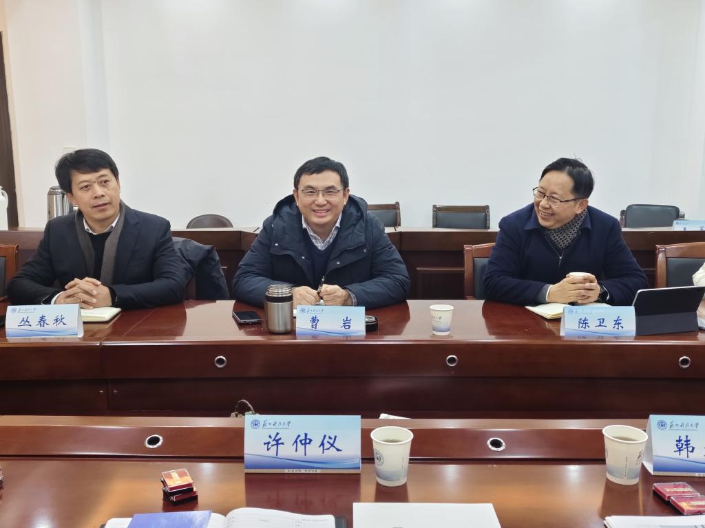 为深化人才培养质量提升与服务地方社会发展,推动高校与地方协同发展新格局,2026年1月21日,云顶国际8588yd云顶国际8588yd与常州市经开区教育局、常州市戚墅堰实验中公司合作交流会在石湖校区教6楼401会议室顺利举行。常州市经开区原教育局副局长许仲仪、现教育局督导杨平、戚墅堰实验中学董事长韩爱民、戚墅堰实验中学副董事长丁颖、苏科大常州员工会会长缪冬生参加了会议。双方围绕师范生协同培养机制、中学科学教育创新实践、心理健康教育实践等议题展开深入研讨。