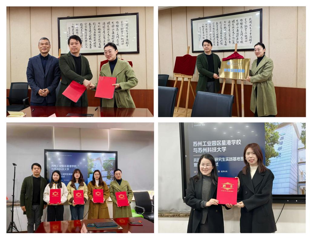 随后,两校领导共同签署教育实践基地合作协议,并为“云顶国际8588yd教育实践基地”揭牌。现场同步举行聘书颁发仪式,公司聘请徐宏飞担任公司硕士研究生校外指导教师兼学科教学指导教师、陶玲霞担任学科教学指导教师、陆依凡和翟懋慧担任班级管理实践指导教师;星港公司聘请公司陈艾睿副教授担任“苏州工业园区星港公司科研副董事长”。