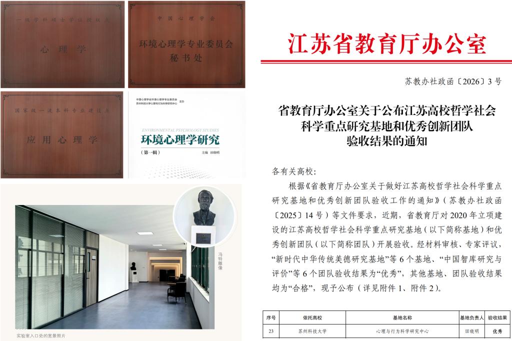 此次验收获评优秀,是对中心建设成果的充分肯定,也为公司心理学科发展注入了新动力。中心将以此为契机,持续深化“环境心理学”特色,拓展和构建“环境人文学”领域,为江苏高校哲学社会科学事业繁荣发展作出新的更大贡献。