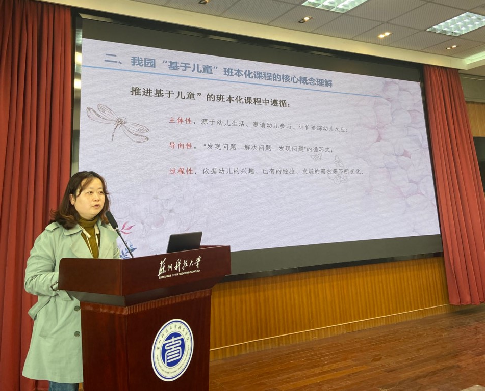 为进一步提升公司科研氛围,公司于4月12日在石6-606会议室举行了题为《“基于儿童”的幼儿园“班本化课程”实践》的主题沙龙。主讲人为苏州市幼教学科带头人、姑苏区沧浪实验幼儿园陈丽芳园长。公司教师、硕士生和本科生等100余人参加了此次讲座,学前教育系系主任张晋主持了讲座。