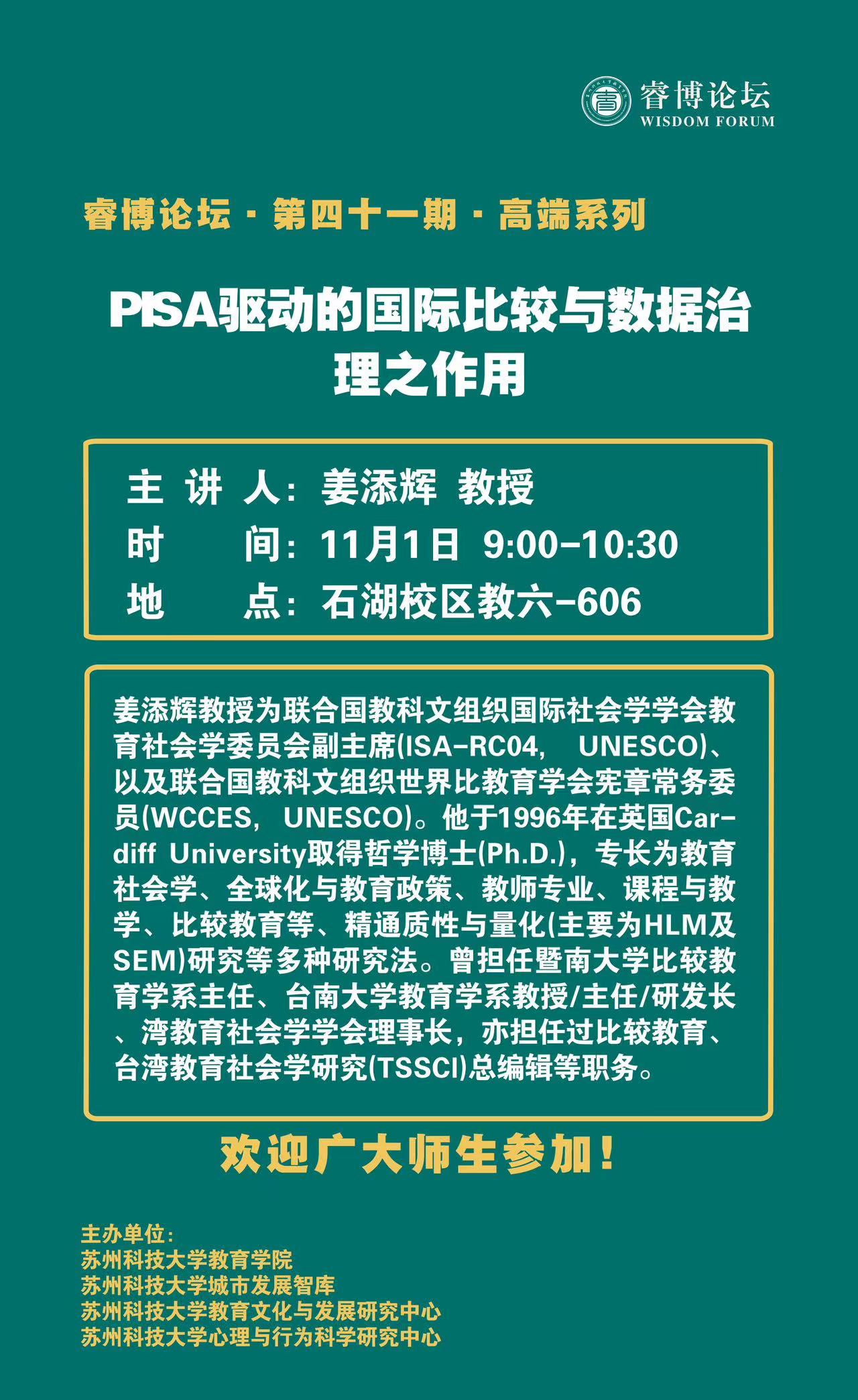 【信息来源】云顶国际8588yd 报告日期:11月1日 时间:9:00——10:30 报告地点:石湖校区教6-606 主讲人:姜添辉 发表时间:2023-10-27 浏览次数: