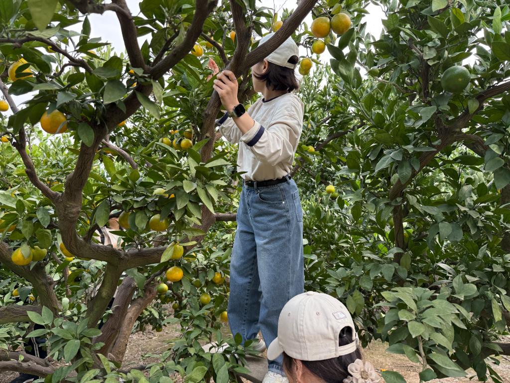 随后教职工们前往生态桔园开展采摘活动。漫步在桔林间,亲手采摘金黄饱满的果实,大家在轻松愉悦的氛围中感受秋收的乐趣,也实地见证了苏州乡村振兴与生态文明建设的生动实践。