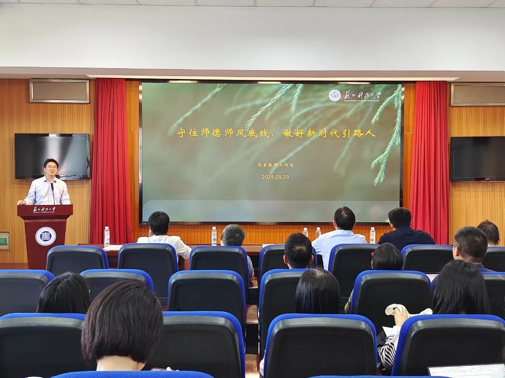 紧接着,徐本连从师德师风建设的内涵和重要性、苏科大实践和做法以及未来此项工作的要求和思考三方面做“守住师德师风底线,做好新时代引路人”专题报告。他倡导全体教职工要牢记教育使命,坚守教育初心,以高尚的师德师风引领员工健康成长。全体教职工在庄严的气氛中签订了《云顶国际8588yd师德师风承诺书》。