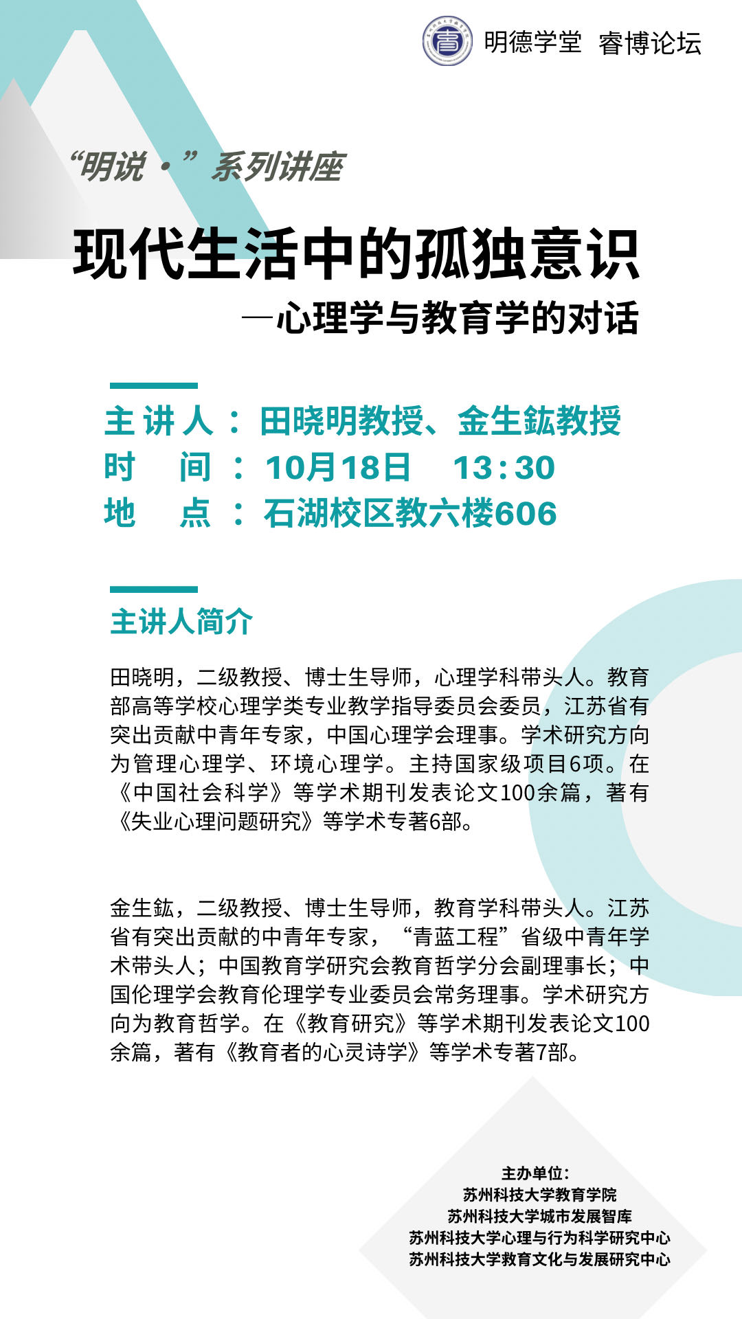 学术讲座:现代生活中的孤独意识——心理学与教育学的对话
