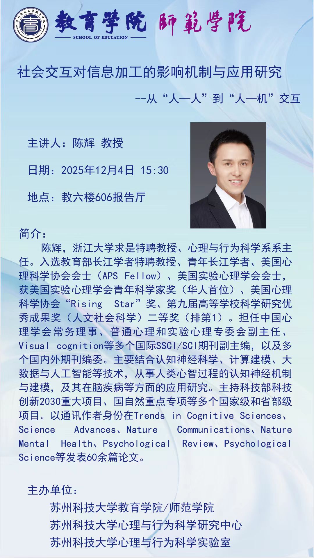 讲座:社会交互对信息加工的影响机制与应用研究——从“人-人”到“人-机”交互